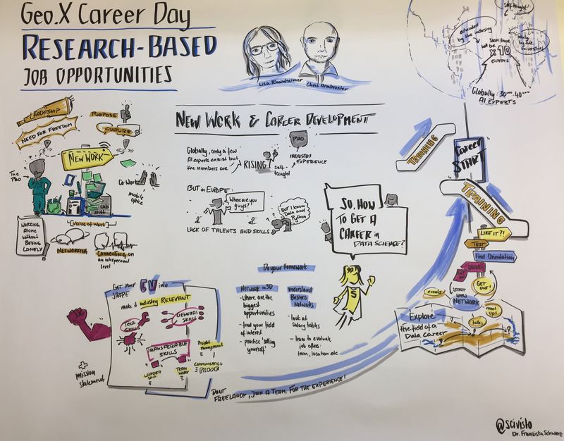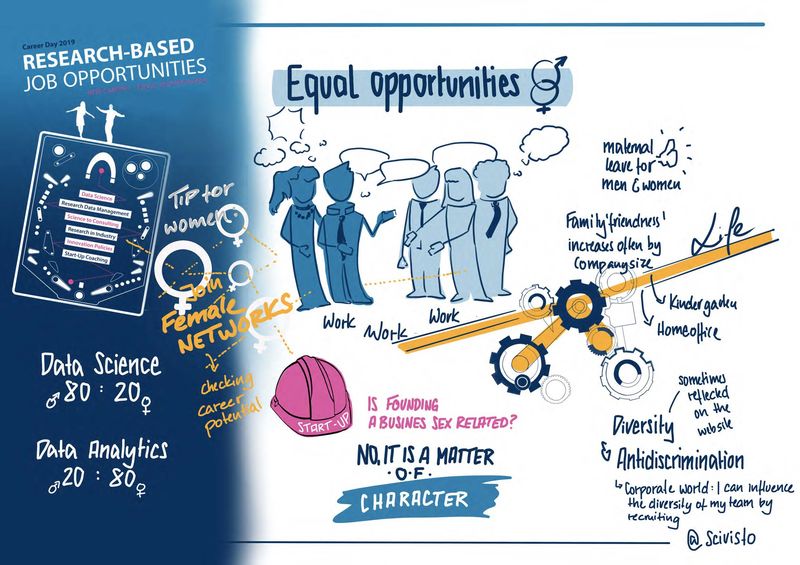 We co-organized the 3. Career Day that took place on the 7th of November with the overarching headline “Research-based job opportunities – new careers - equal opportunities” and a special emphasis on data and data-based career. Almost one hundred PhD students and postdocs ceased the chance to gain insight new career opportunities – all related to Science and also Research. The day was kicked off by a Keynote talk about New Work (Lisa Rheinheimer, Geo.X) and Data Careers (Chris Armbruster, The Drivery), before Bianca Praetorius taught everyone present the Dos and Don’ts of Pitching their research and included a hands-on practical session. After the lunch break, which already gave an opportunity to network, participants had the chance to talk to our invited experts about different topics such ‘From Science to Data Science’, ‘Research Data Management’, ‘Scientific Digital Infrastructure’, ‘Research in Industry’, but also on related subjects such as ‘Innovation Policies and Research’ etc.